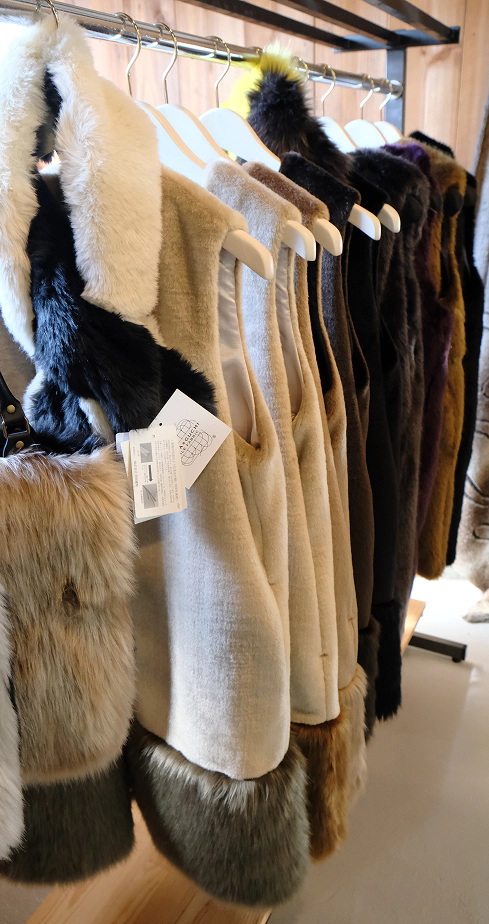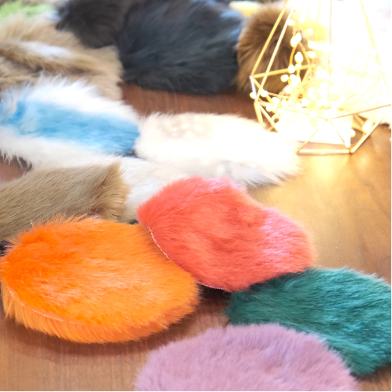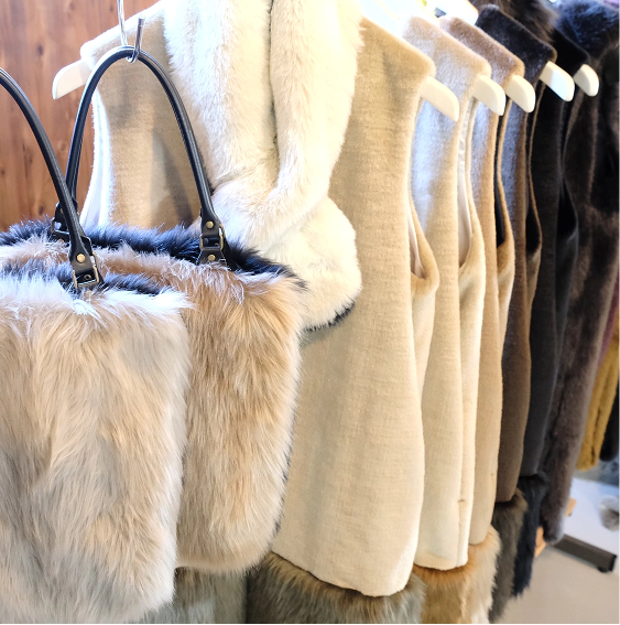 ストール、バッグ、ジレ、クッションカバーなど、作りたいアイテムを決定。その後、50種類以上のパイル長さ・生地・カラーバリエーションの中から、触り心地や見た目を確かめながら、あなただけの組み合わせを選びます。