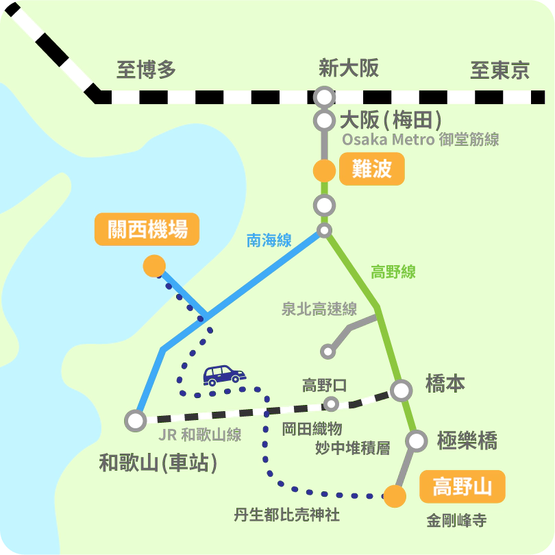 從高野山開車約50分鐘、搭乘電車約45分鐘可達